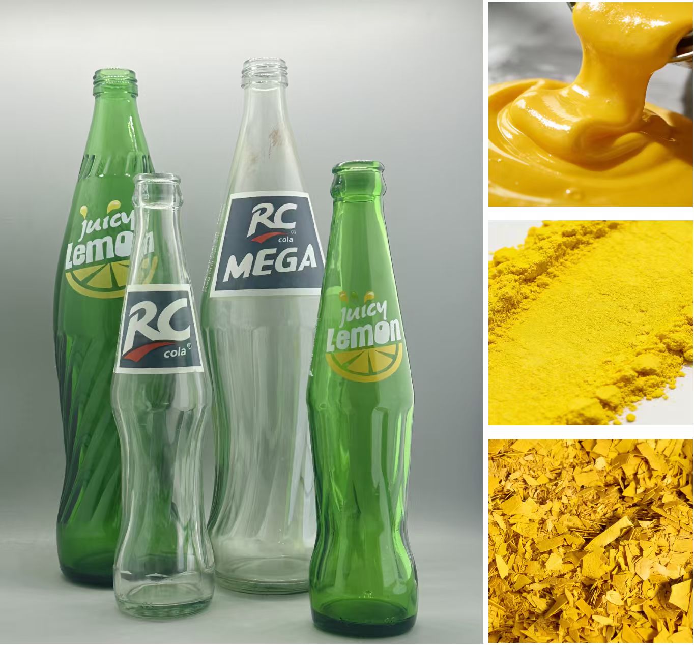 Our glass department produces enamels with a wide range of colors for glass bottles.